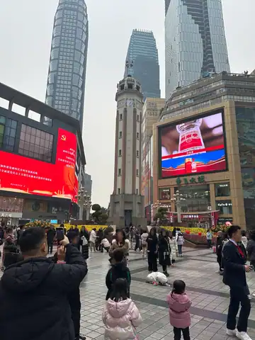 The Chongqing Liberation Monument stood at one of the mall exits, and the place was packed with people. It’s one of the strongest symbols of the city, erected after the Anti-Japanese War fought by Chongqing’s Resistance.