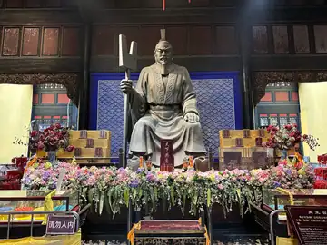 First of all, we find a statue of Da Yu (大禹), a legendary figure in Chinese history. He is famous for founding the Xia Dynasty (夏朝), the first dynasty in China according to tradition, and especially for his role in flood control — This is the Temple of King Yu, Yǔ Wáng Gōng (禹王宮).