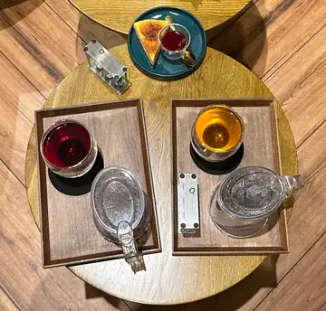 The Moroccan tea had a familiar wild mint taste, but it was too diluted. Instead of the usual Gunpowder Green Tea, they used a different, difficult to identify green tea. They served it with honey, but it was too concentrated to bring out any real flavor and it ended up overpowering my first cup (which arguably, is my fault). Despite this, it was the only tea with a somewhat defined taste, though the bitterness was poorly managed. It felt like a tea-bag Moroccan tea, with a correct presentation but not round enough of a flavor.