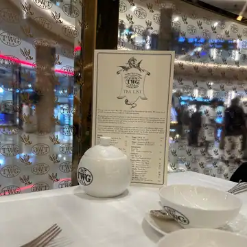 I visited TWG Tea at Dubai Mall, which serves as both a teahouse and a teashop. Prices range from 10-30 USD for a 400mL teapot. After being seated next to the fountain, I decided to order two teas strategically, which I will describe as I review them.