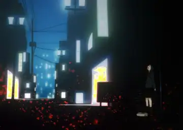 The city breathes, its cold and immense structures standing like silent witnesses to her wandering. In every corner, reality becomes fuzzy, the familiar twists under the weight of the strange. The streets, once pathways, are now endless labyrinths. Lain, a shadow in this landscape, fades away.